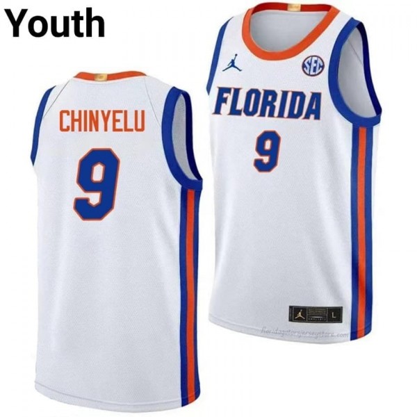 Rueben Chinyelu Gators #9 White Basketball Jersey | Youth Authentic High School Edition 81737371